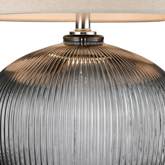 Linden Smoke Glass Table Lamp with Natural Linen Shade
