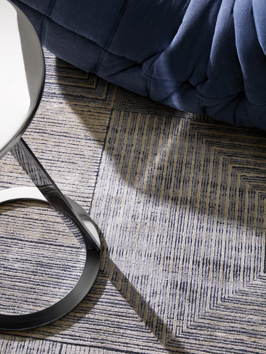Rectilinear Patterned Rug - Blue/Ivory