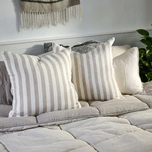 Santi Linen Cushion - Off White/Nutmeg Stripe