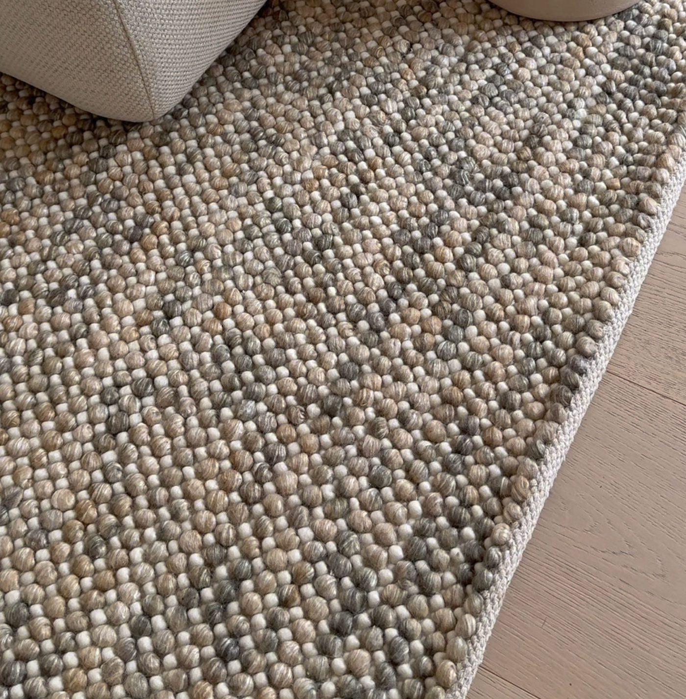 Quality handwoven 100% wool rugs in a soft loop-pile textured weave.