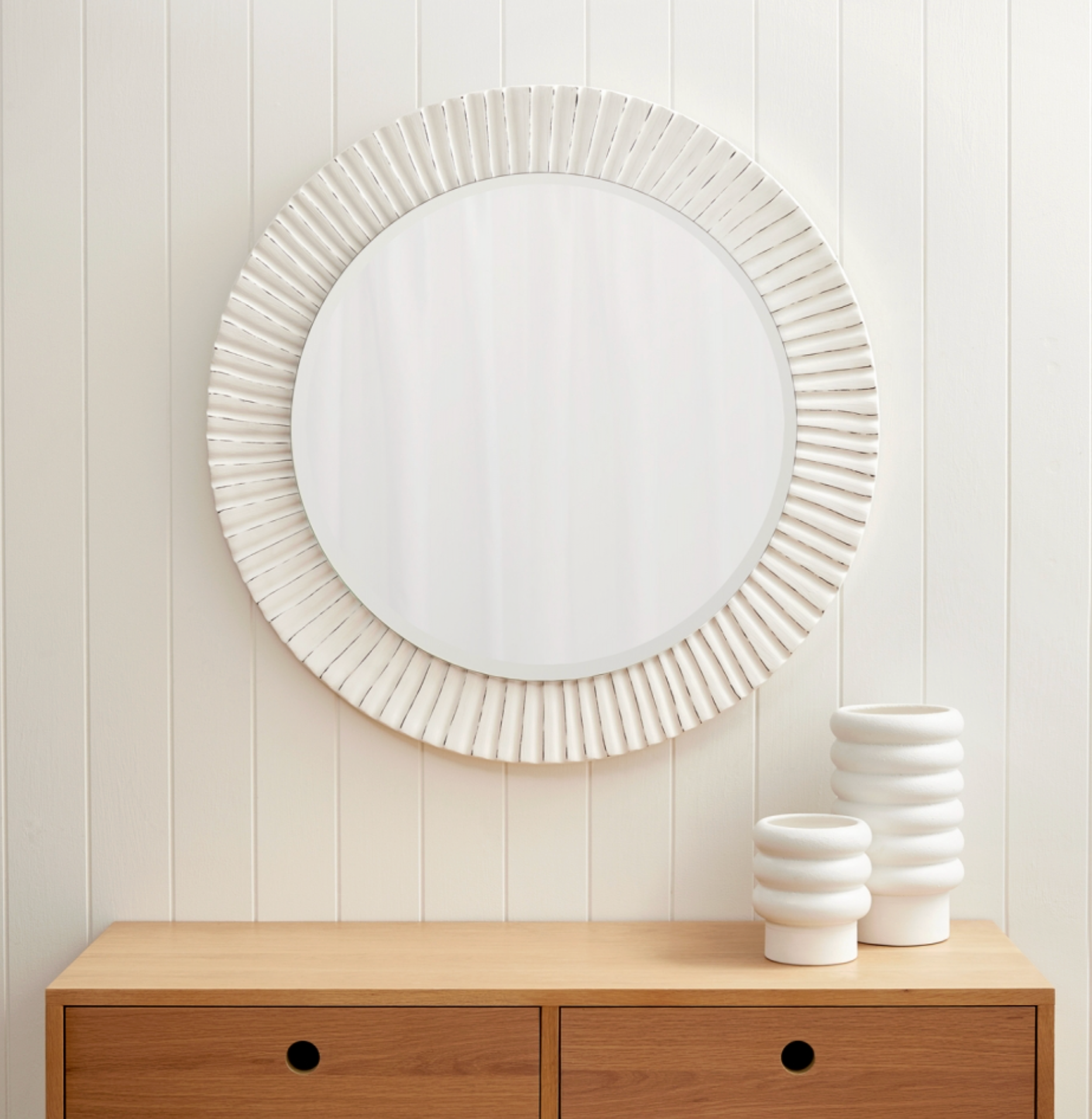 Add the perfect finishing touch to your space with this rustic circular mirror.