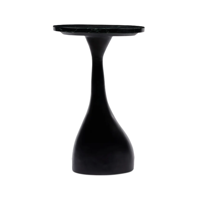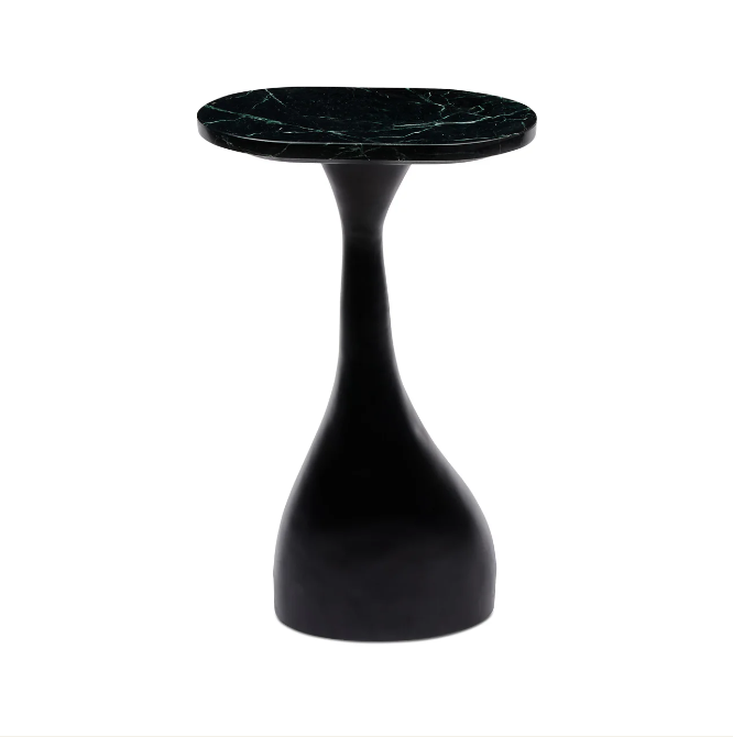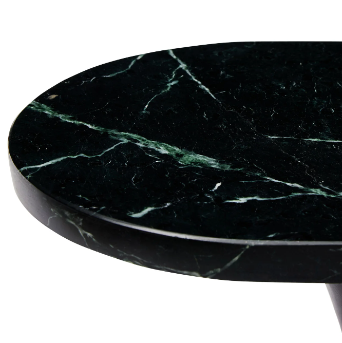 This Side Table features a stunning black & dark green marble oval top & beautifully contoured black metal base. With elegant curves & simple features, this abstract modern style side table is ideal placed next to the sofa or used as an end table or to display stylish home accessories or plants, perfect to enhance your contemporary living space.