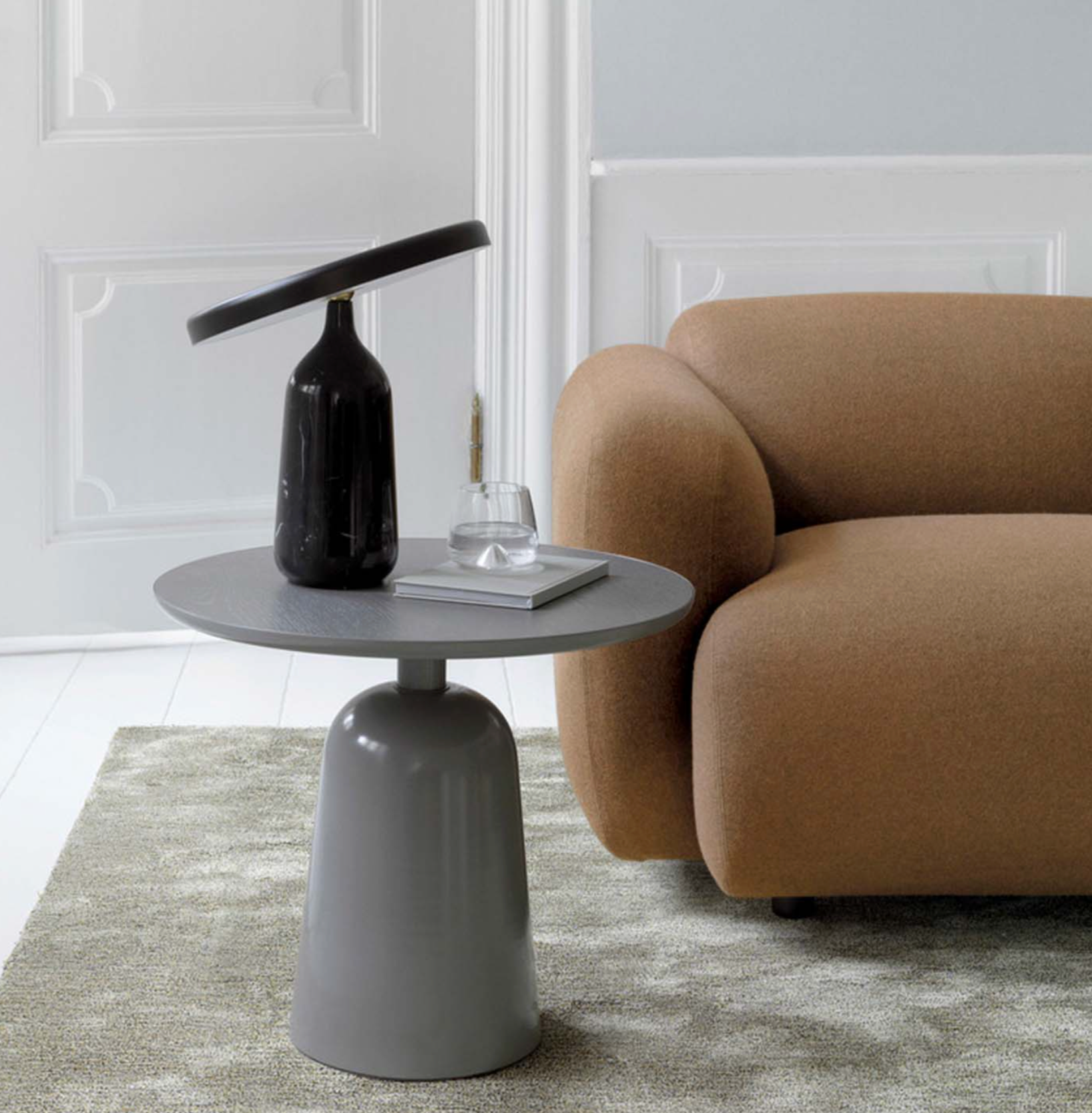 Lampshade and base meet each other in a golden rotation point in the form of a glossy brass ball. The shade can be tipped around the ball to control the direction of the light. With its downward facing screen, Eddy not only illuminates its surroundings but also itself. Its light shines down on the marble, emphasising the changing character of the material. The table lamp emits a soft light, which can be adjusted with the circular brass dimmer that forms a refined detail on the lampshade’s top.