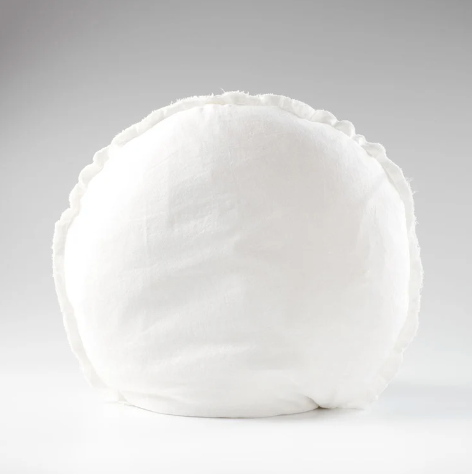 This Lulu Cushion is a 100% European linen round cushion, with a fine frayed edge detail. It comes filled with feather insert, which have been designed to be the softest, most comfortable insert on the market.