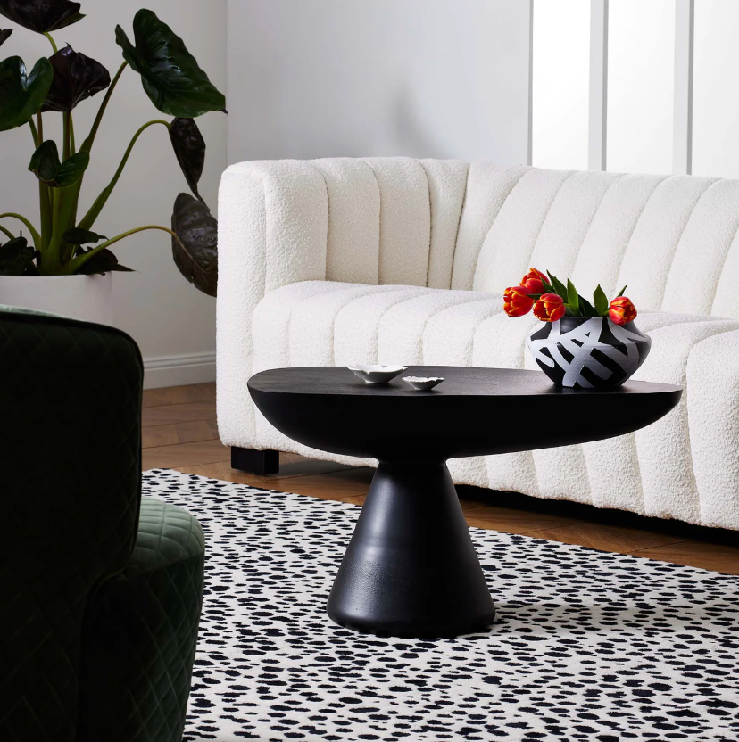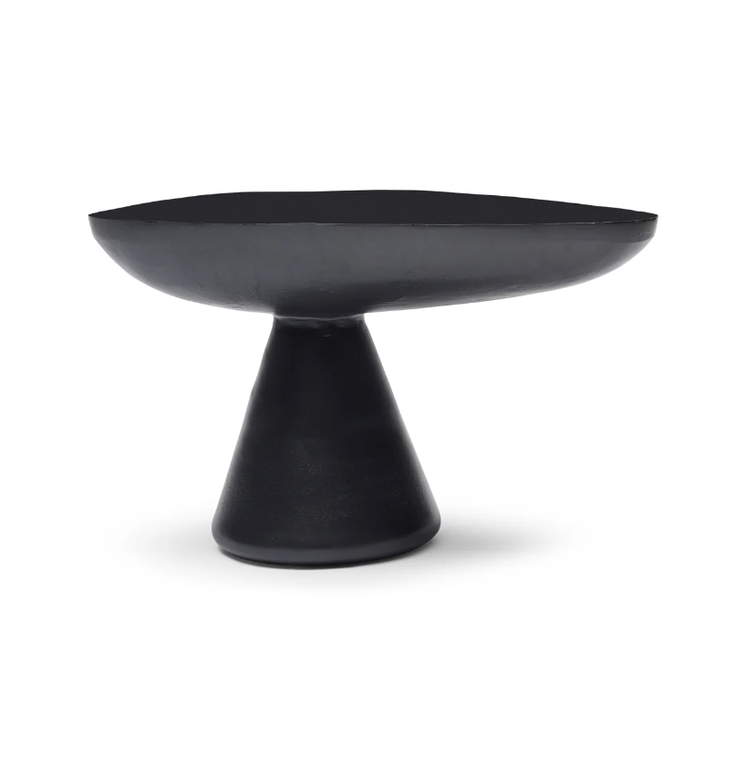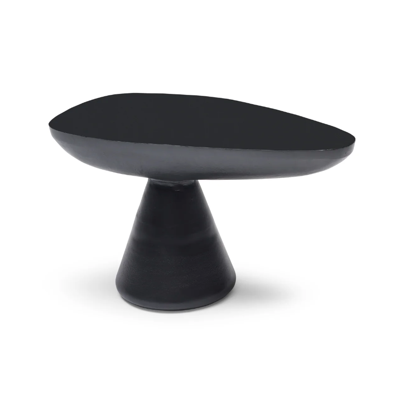 Low modern sculptural coffee table. Matt black painted raw aluminium.