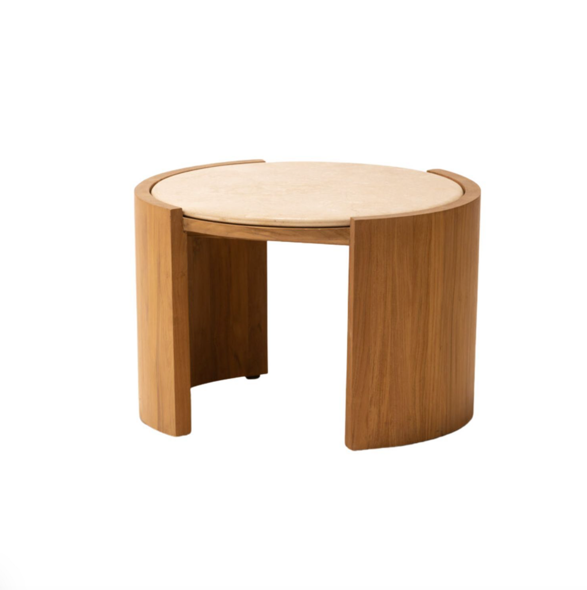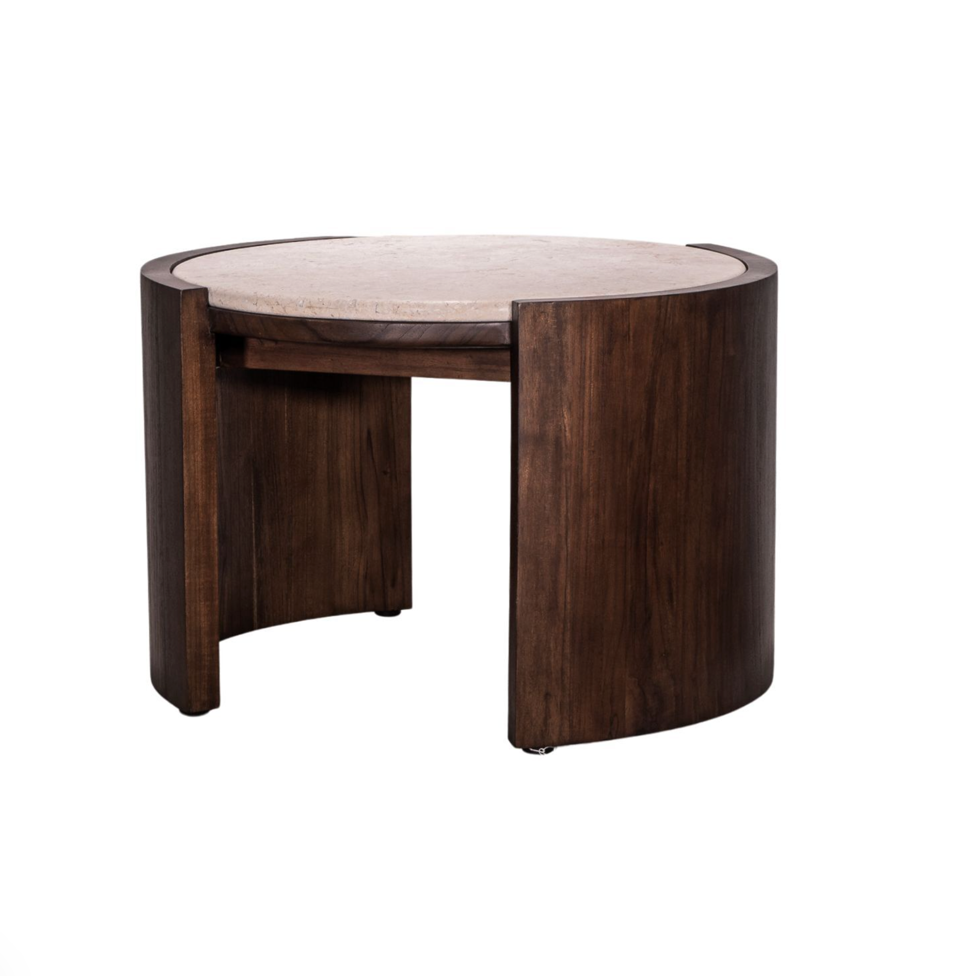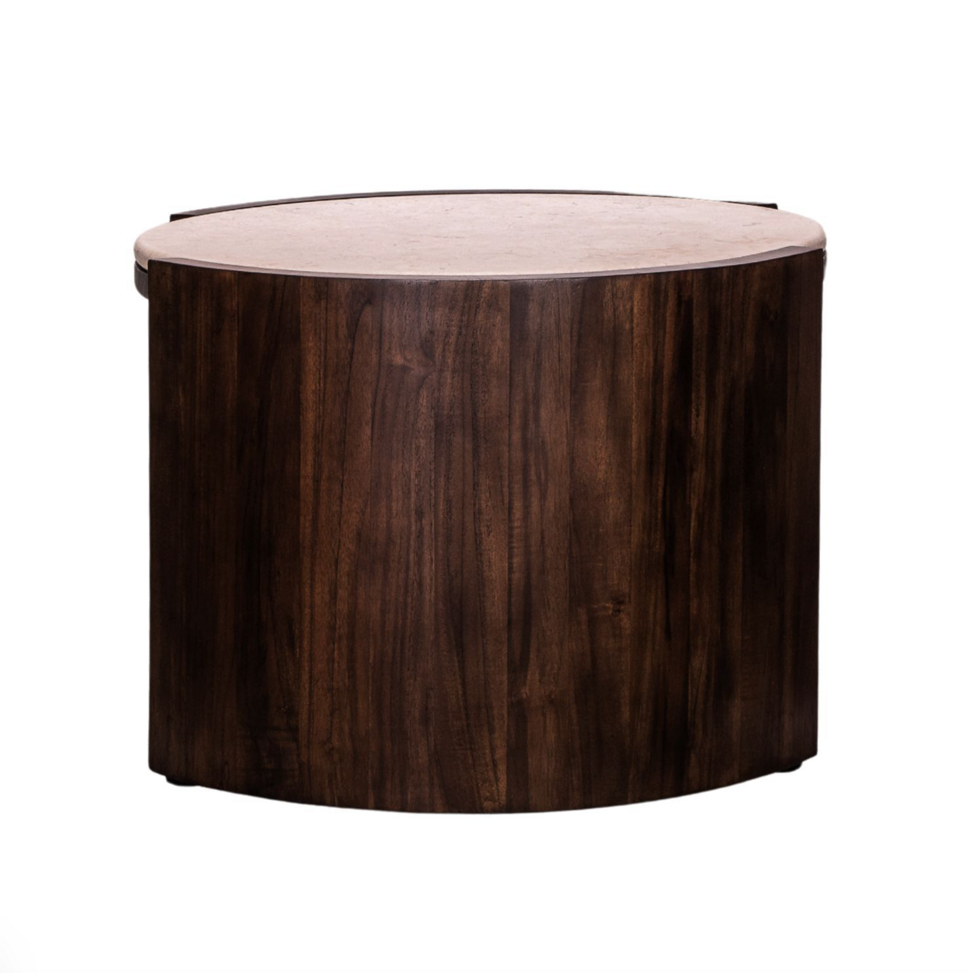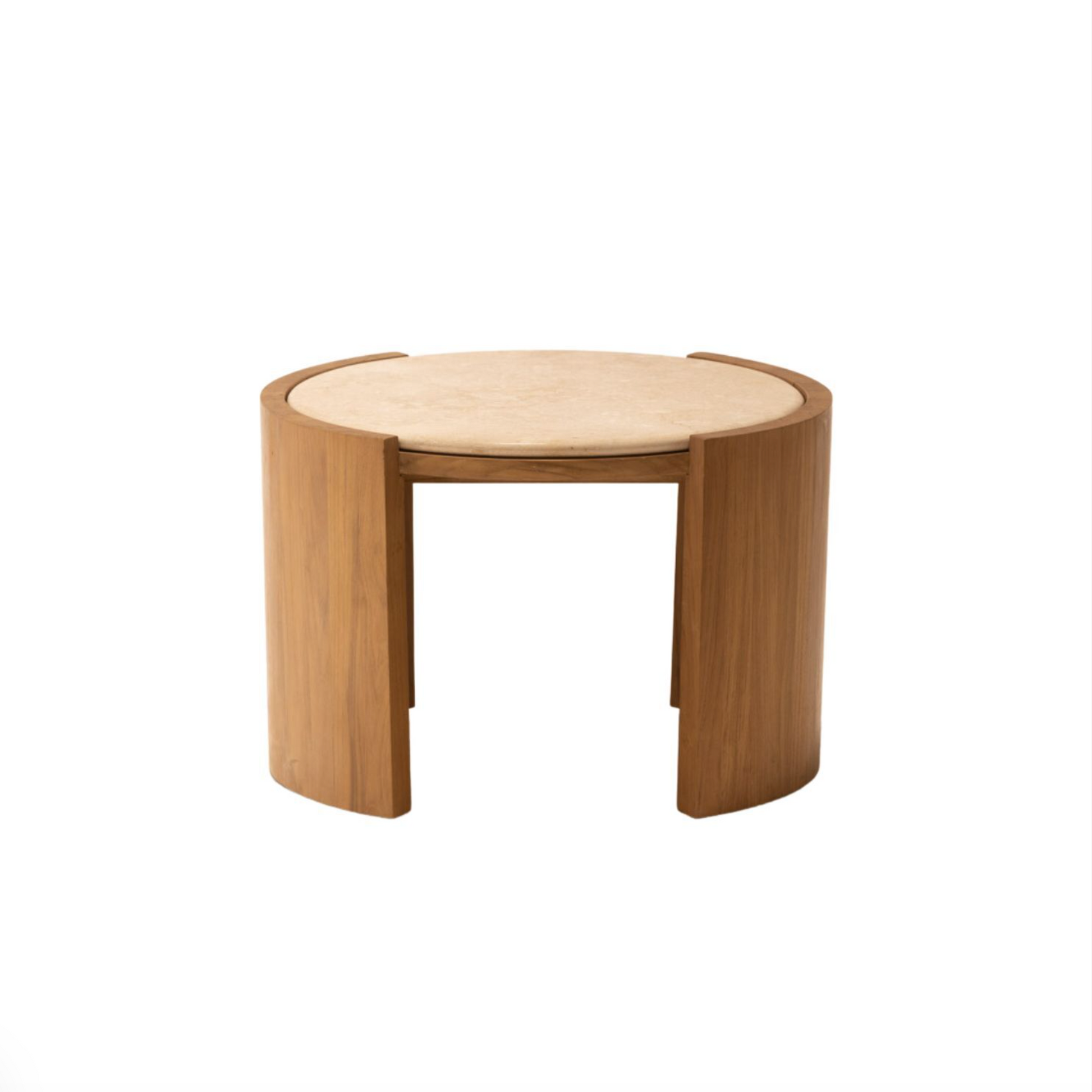 Elevate your contemporary living spaces with this Side Table, featuring a stunning natural marble finish gracefully perched upon a round, sturdy oak construction, exuding distinct personality. A perfect addition to any stylish conversational area, this side table effortlessly complements sectional or 3-seat sofas, anchoring the space with elegance and charm.