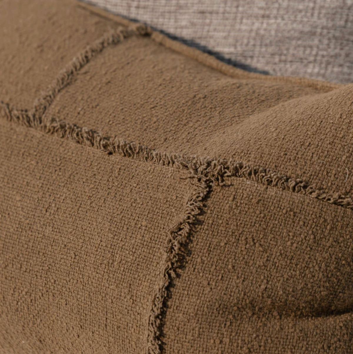 A richly textured cushion designed to ground and soften your space. The Aerial Cushion is woven from tactile cotton bouclé with raw-edged seams and sculptural geometric panelling for a handcrafted, dimensional feel.