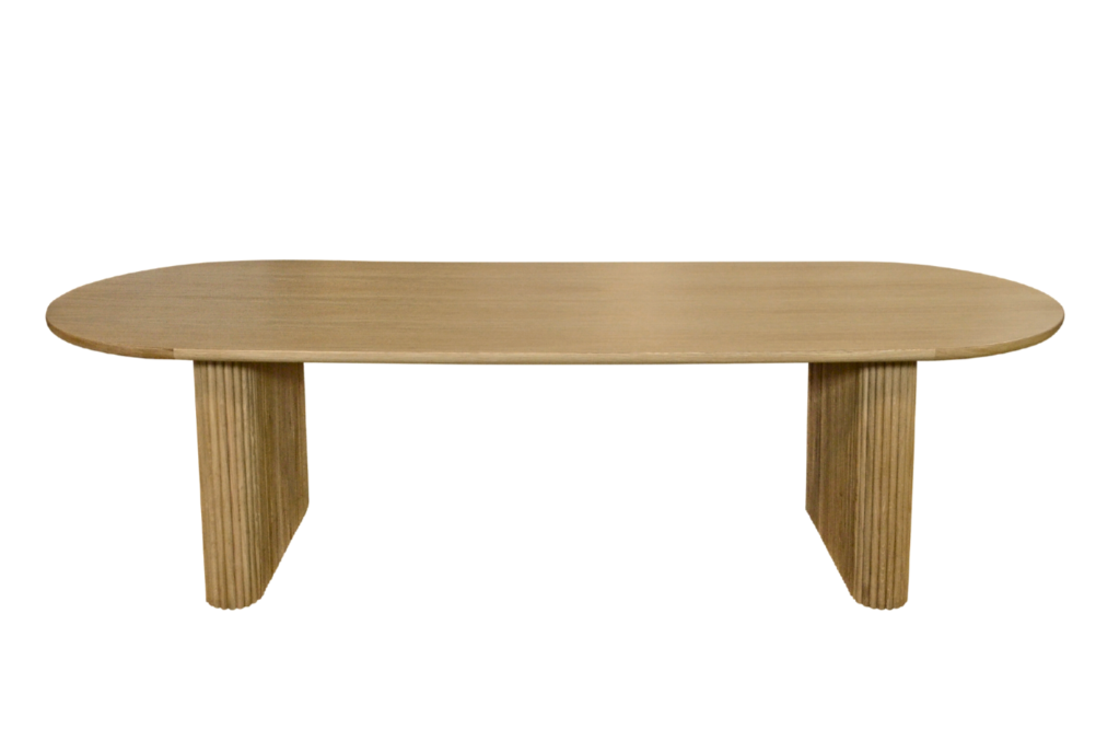 Our Oak oval dining table is eye-catching, with an oak top and vertical oak panel detailing available in a range of different colours.