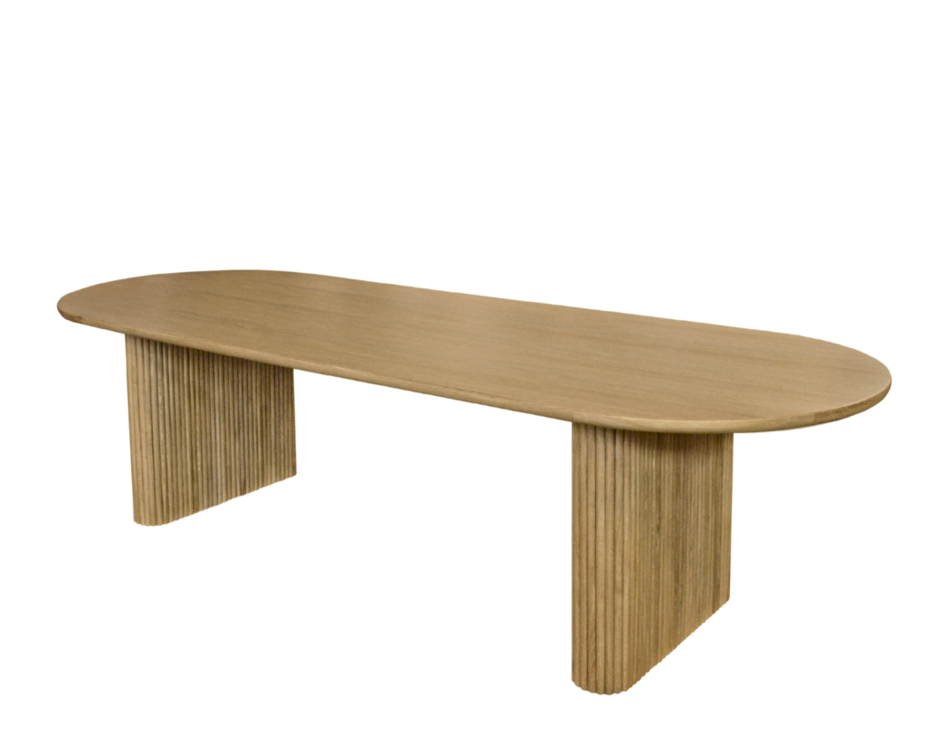 Natural Oak Oval Dining Table with Vertical Oak Panel