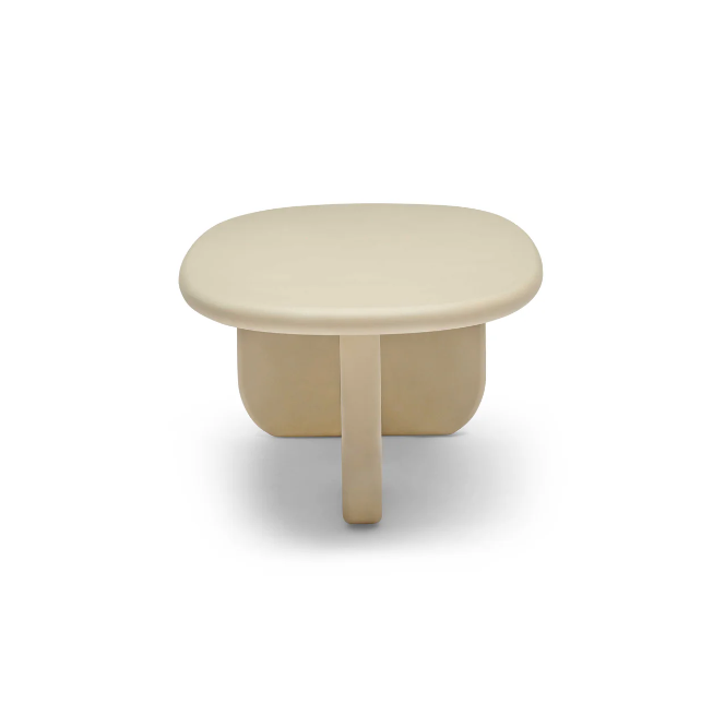 A flawless matte lacquer finish in a natural hue that seamlessly blends into any space. Rooted in the principles of nature-inspired form & design, this table is a testament to organic elegance. Its oval shaped table top is supported by unique paddle-style perpendicular legs, exuding a sense of grace & modern sophistication. With no harsh edges to interrupt the flow of your living room, this table creates a contemporary and inviting ambience, inviting you to relax and unwind in style.
