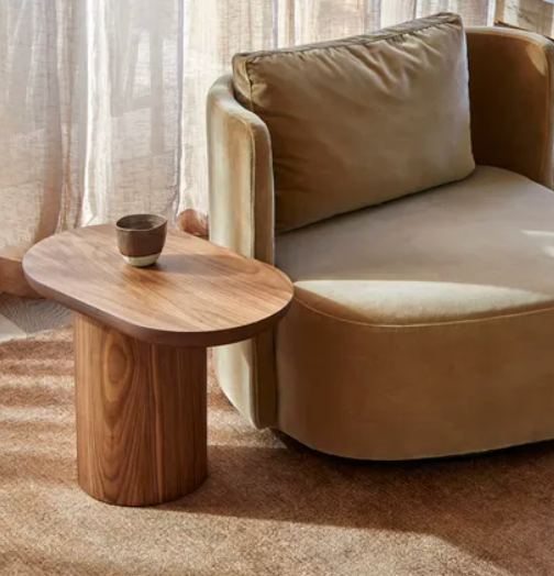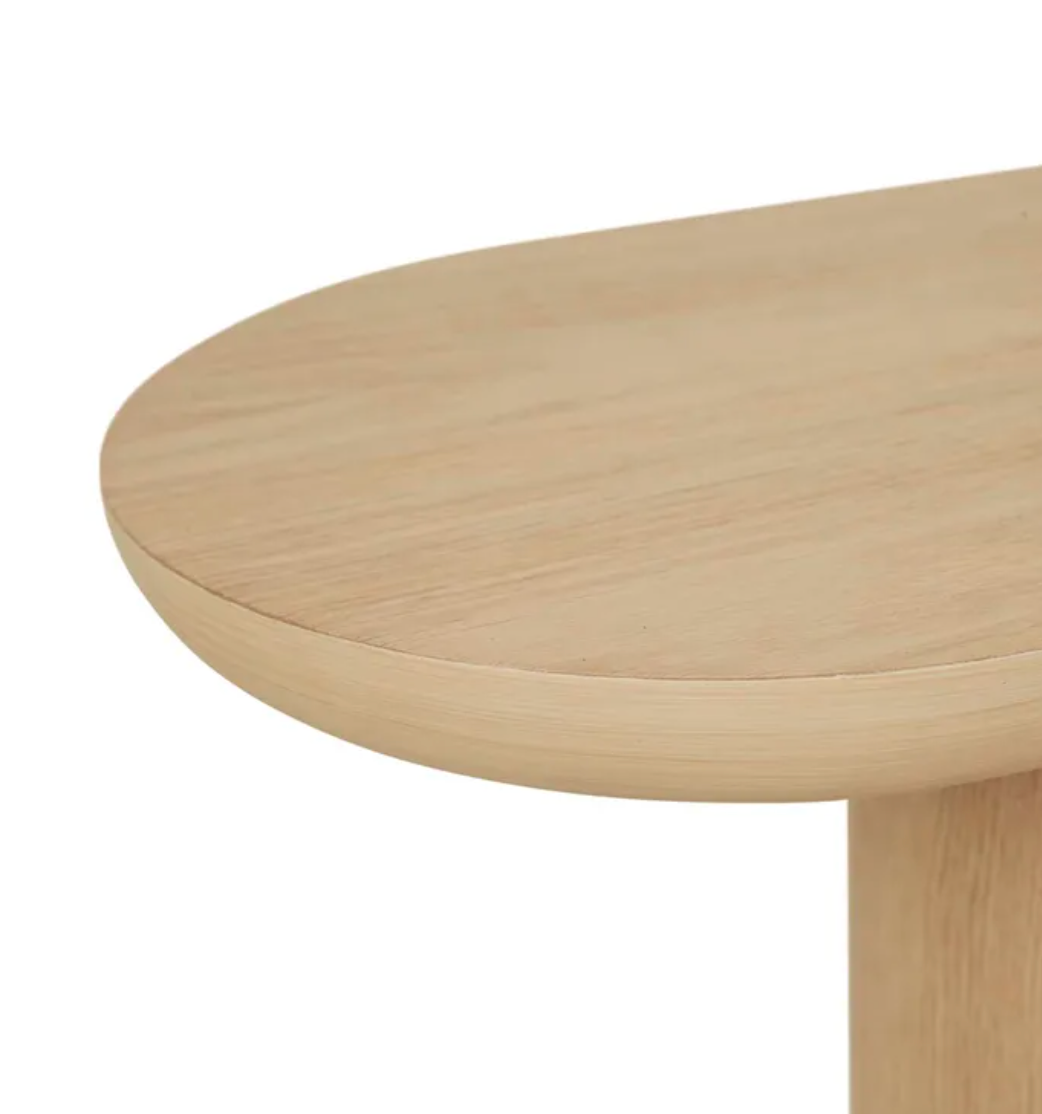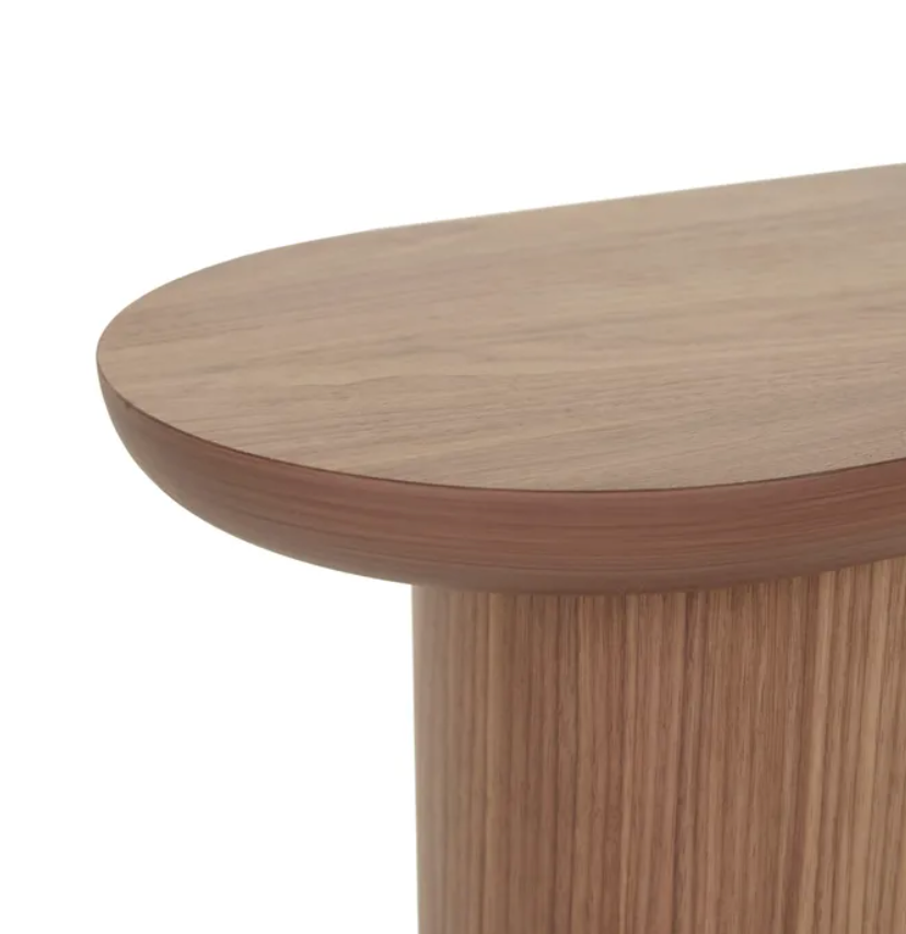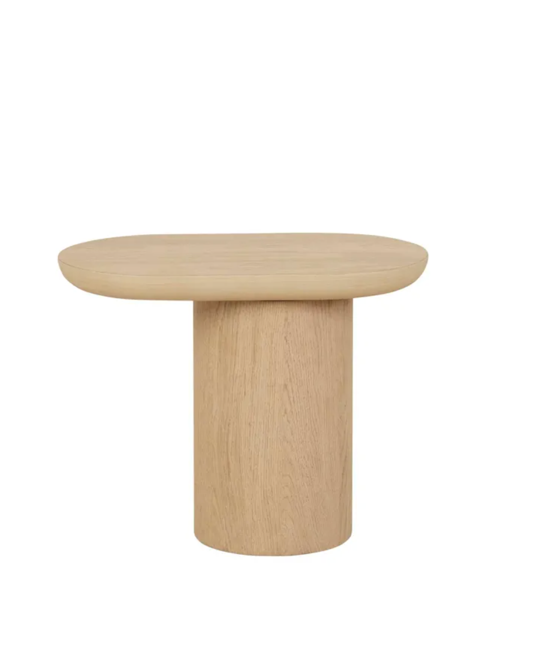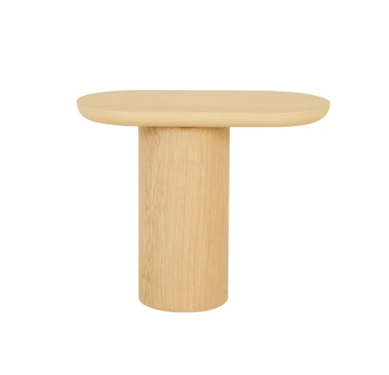 This Pedestal Side Table features a narrow oval top and cantilever construction creating a modern, minimalist look ideal for contemporary spaces. Crafted from oak/walnut veneer, this side table is both stylish and practical, providing a perfect spot to display your essentials.