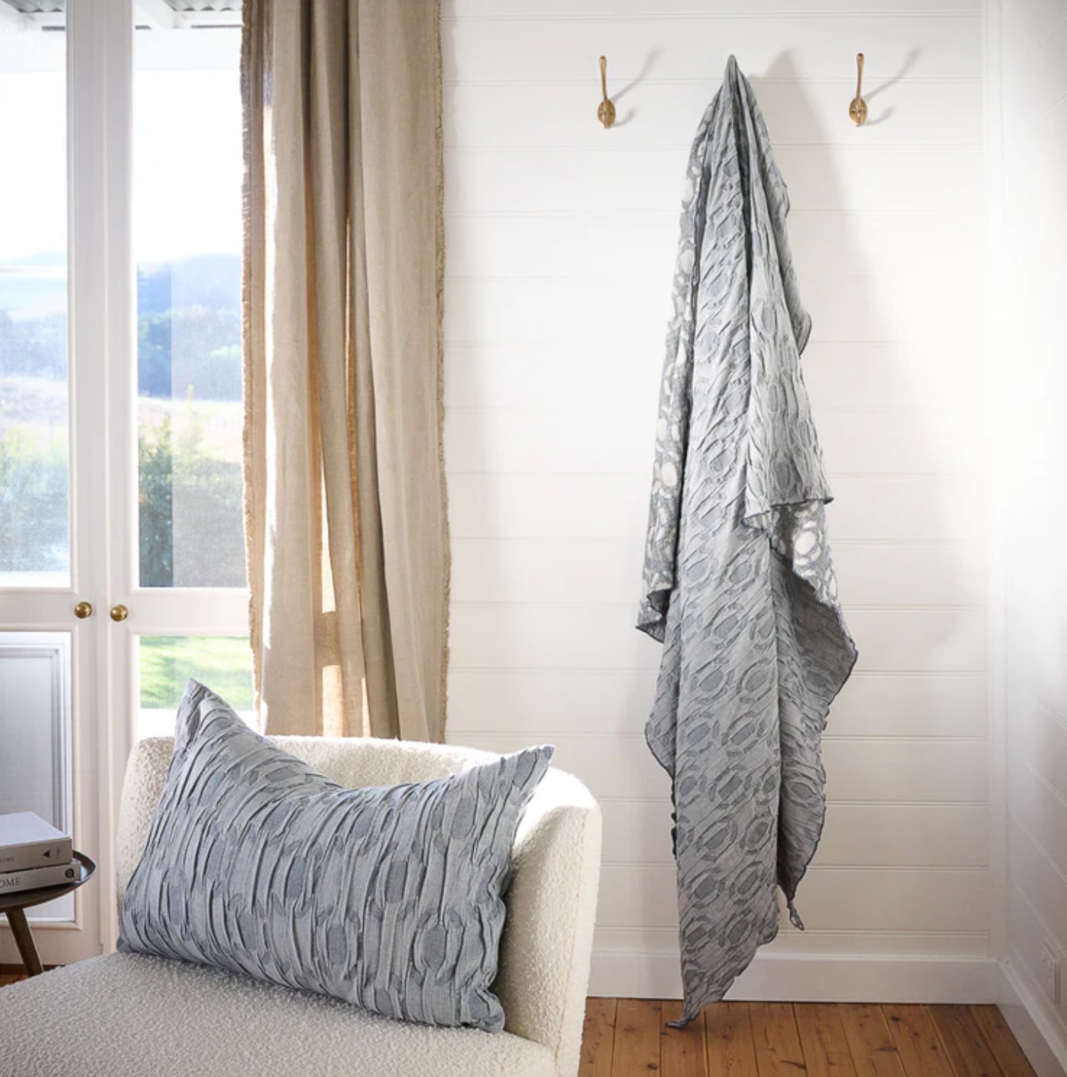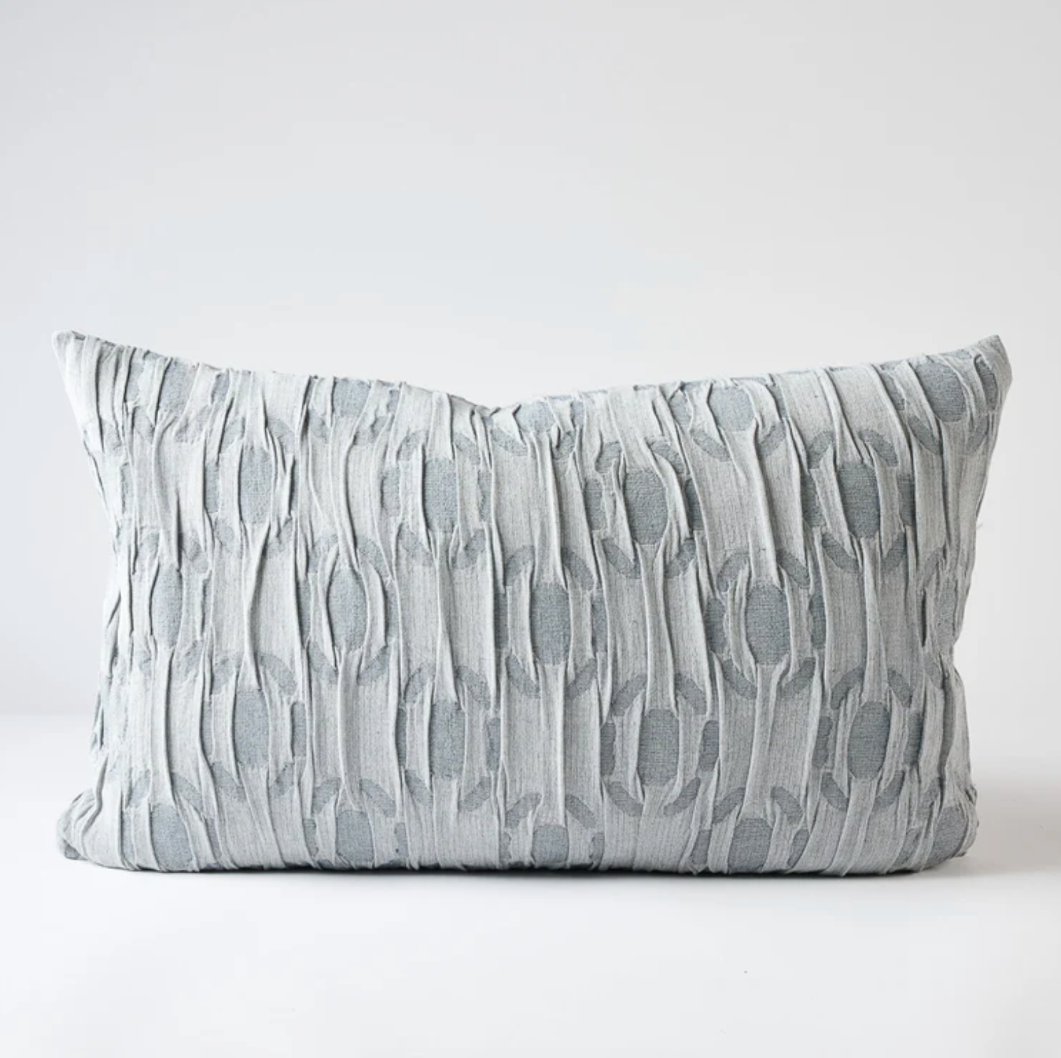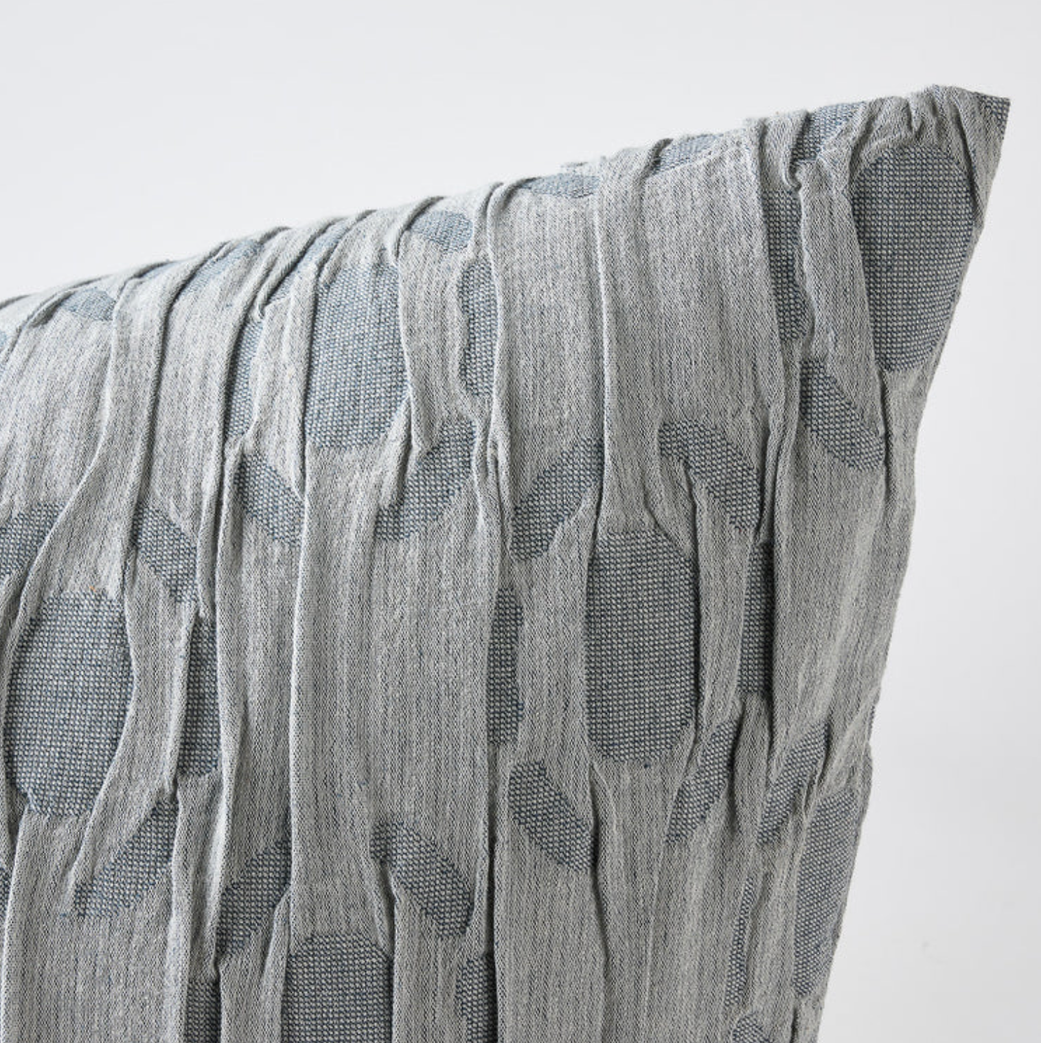 The Synda Cushion showcases a two toned duck egg blue pattern with its textural appeal making it a wonderful stand alone piece. The 100% cotton jacquard resembles an eccentric oval pattern and creates a creamy texture. Try pairing Synda with our new season clay colour way for a gentle play on colour.