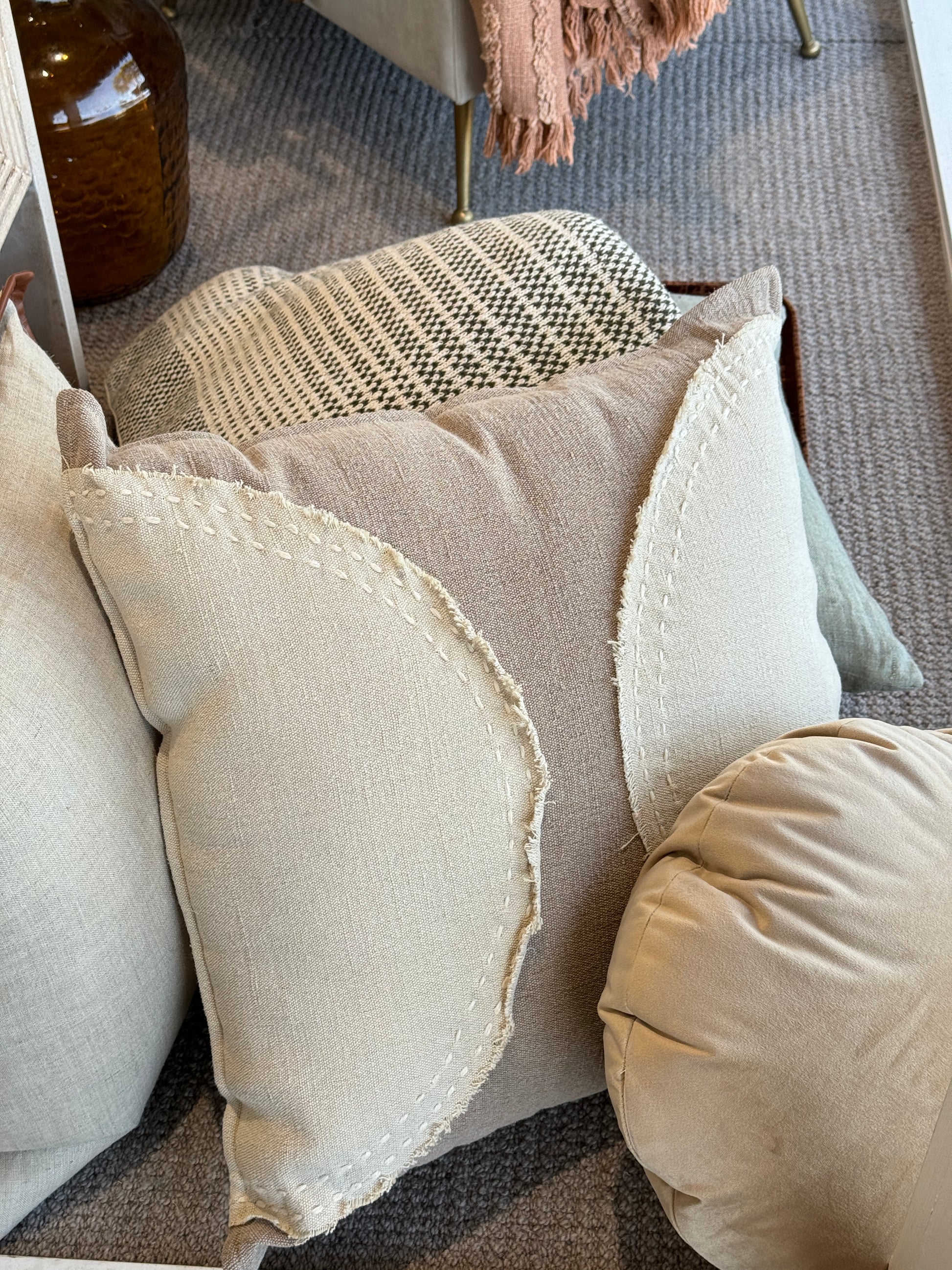This two-colour cushion has beige base and ivory semi-circle layer which will give depth and variety to your living space. This cushion cover boasts both style and functionality with a concealed zipper on one side for easy maintenance.
