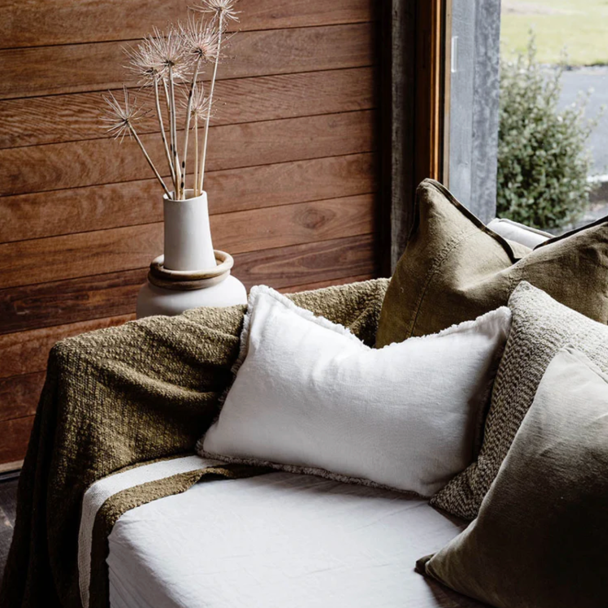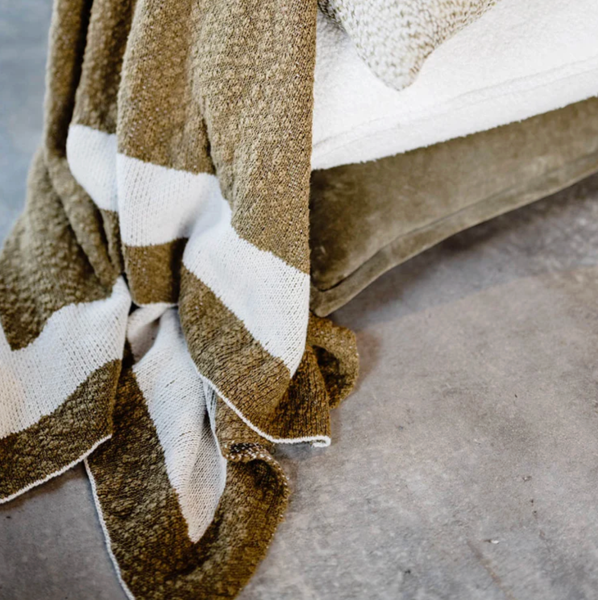 Embodying the tranquillity and simplicity of the Zen collection, the Zen Throw features a harmonious blend of olive and white tones. Crafted from 100% knitted cotton and yarn-dyed for enduring colour, its clean lines and subtle detailing bring a serene elegance to any space.